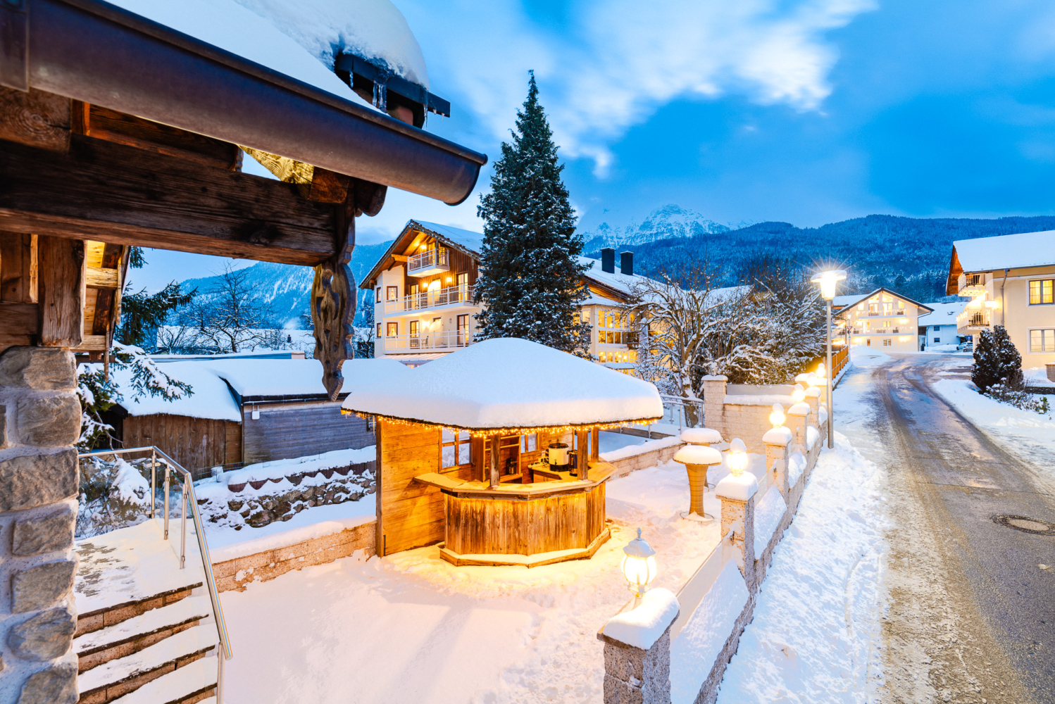 Im Sommer sitzen unsere Gäste sehr gerne auf der sonnigen Stüberlterrasse, direkt am lauschigen Gebirgsbach.